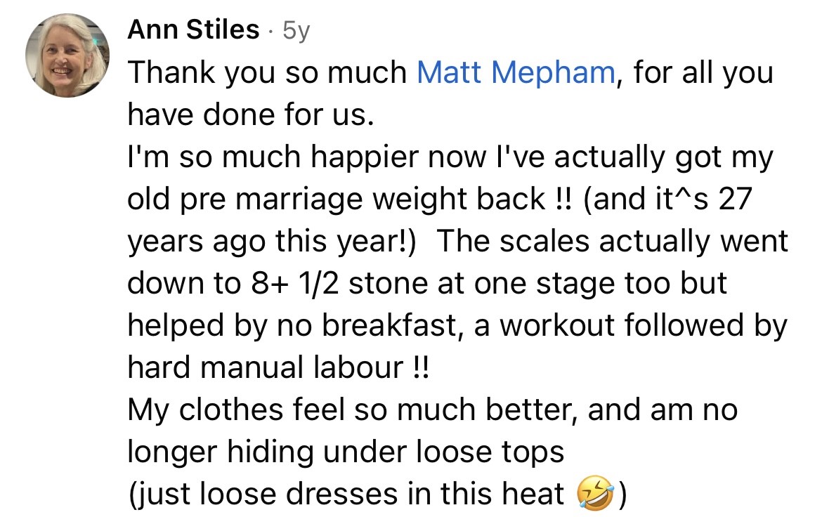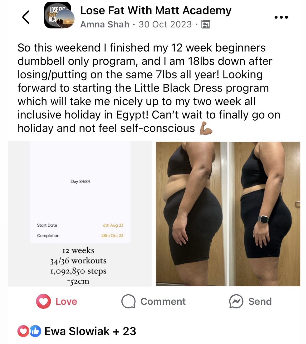 The Lose Fat With Matt Academy is an affordable, lifestyle-based coaching community for busy women who are done with quick fixes, yo-yo dieting and starting again every Monday.