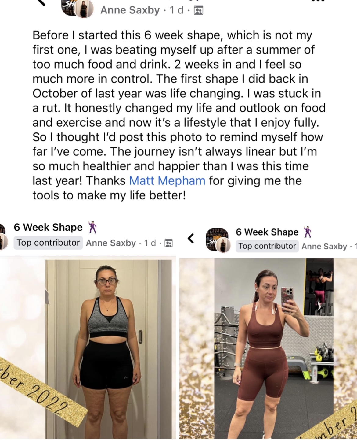 It gives you a clear plan, ongoing support and real accountability so you can lose fat, feel confident in your clothes and maintain it long-term — without restriction, guilt, or fitness taking over your life.